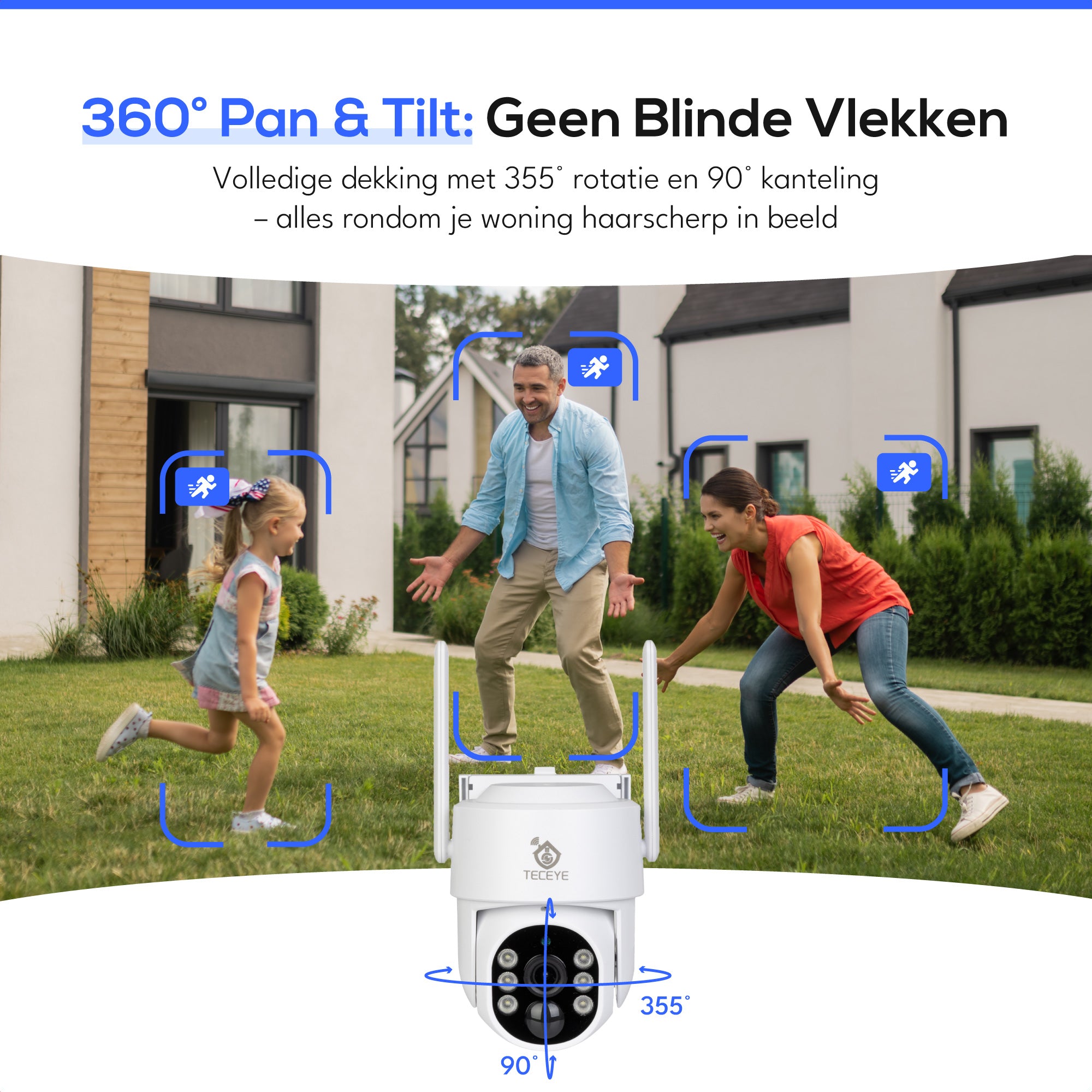 Met 355° pan- en tilt én automatische tracking volgen de TecEye-camera’s elke beweging vloeiend en haarscherp. Geen blinde hoeken, geen gemiste momenten – de camera beweegt slim mee. Bedien en bekijk alles eenvoudig via de TecEye app of rechtstreeks via de NVR.