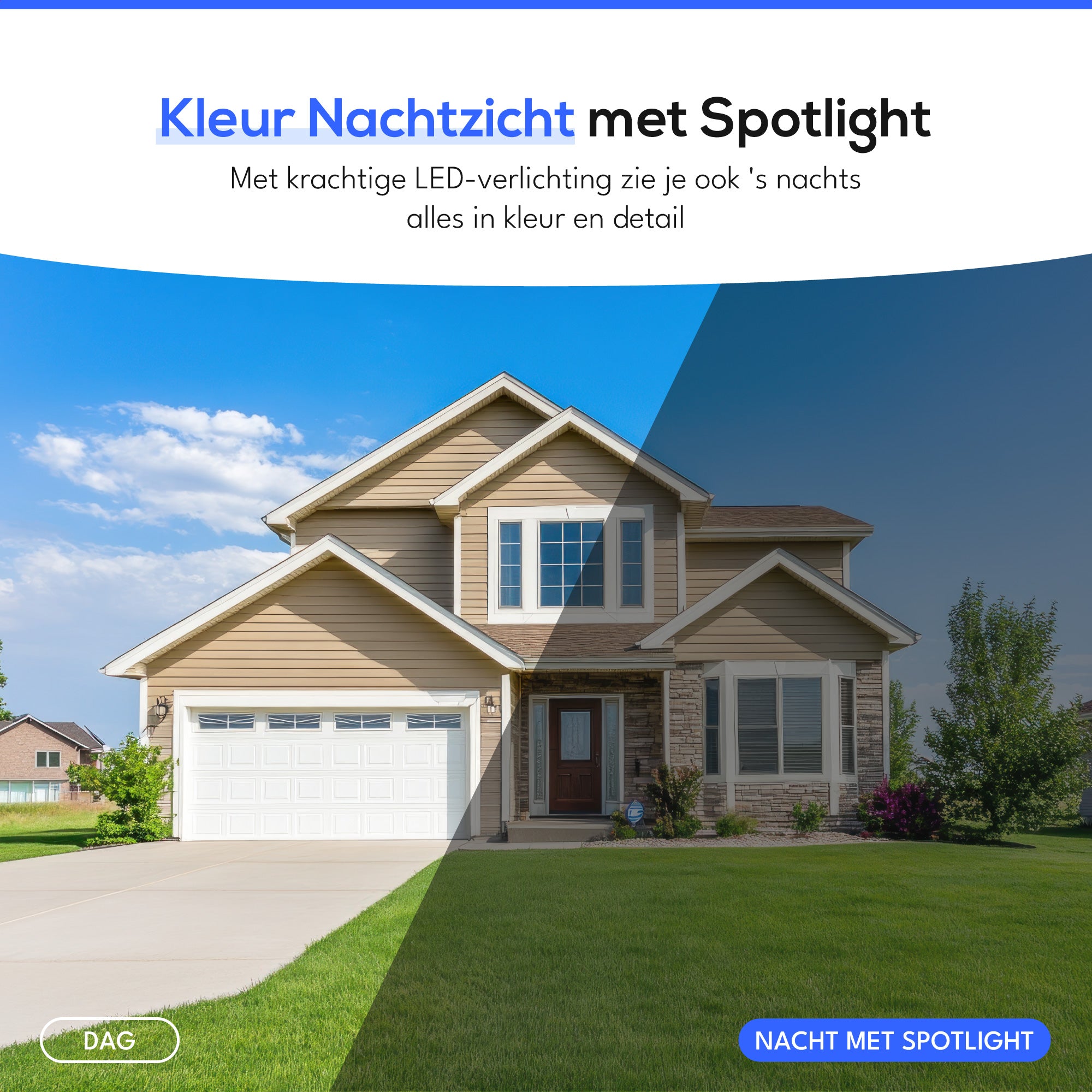 De ingebouwde floodlight staat paraat om indringers af te schrikken op basis van door jou ingestelde voorwaarden, en zorgt bovendien voor full color nachtzicht. Dankzij de tweeweg-audio kun je communiceren met iedereen in de buurt van de camera. Je bepaalt zelf hoe en wanneer de verlichting inschakelt, volledig naar jouw voorkeur.